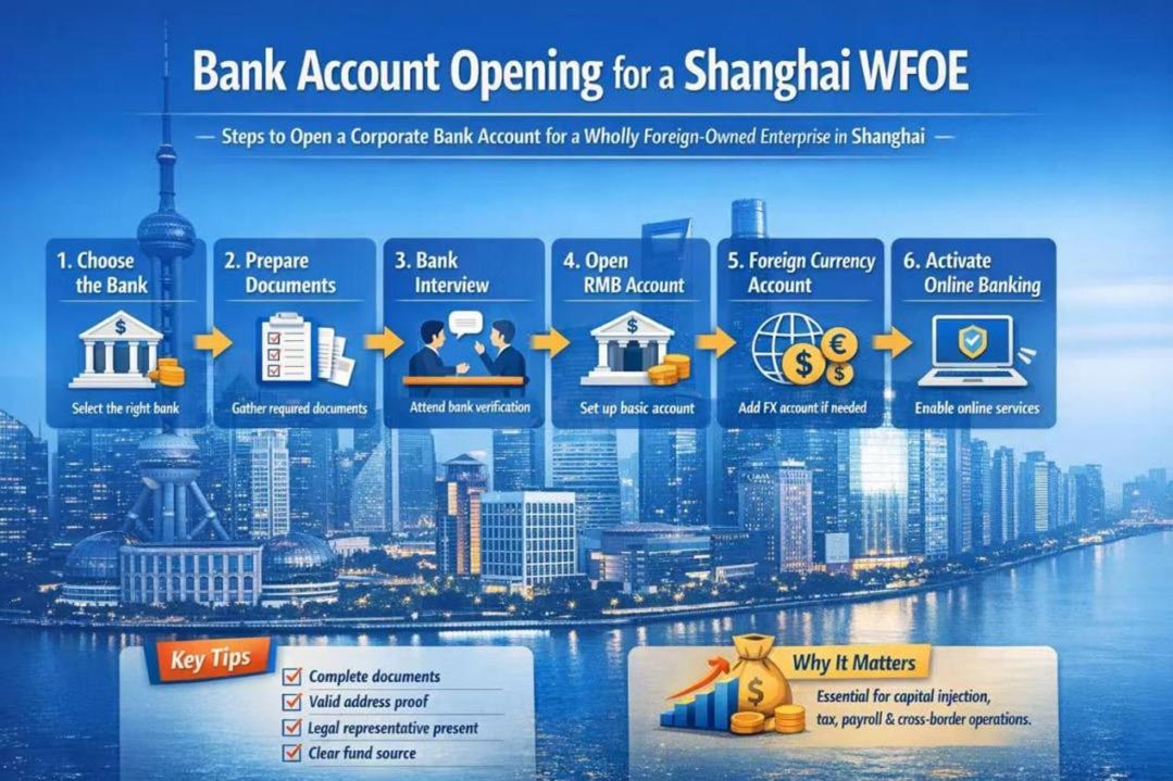 After a Wholly Foreign-Owned Enterprise (WFOE) is incorporated in Shanghai, opening a corporate bank account is one of the key steps before normal operations can begin. A company usually needs a bank account to receive capital injections, make daily payments, handle tax matters, and carry out cross-border transactions.