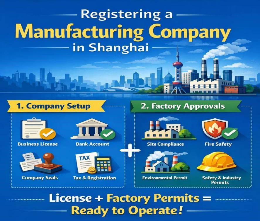 For a manufacturing company, company registration alone is not enough. The factory site and actual production activities must also meet legal requirements before starting operations.